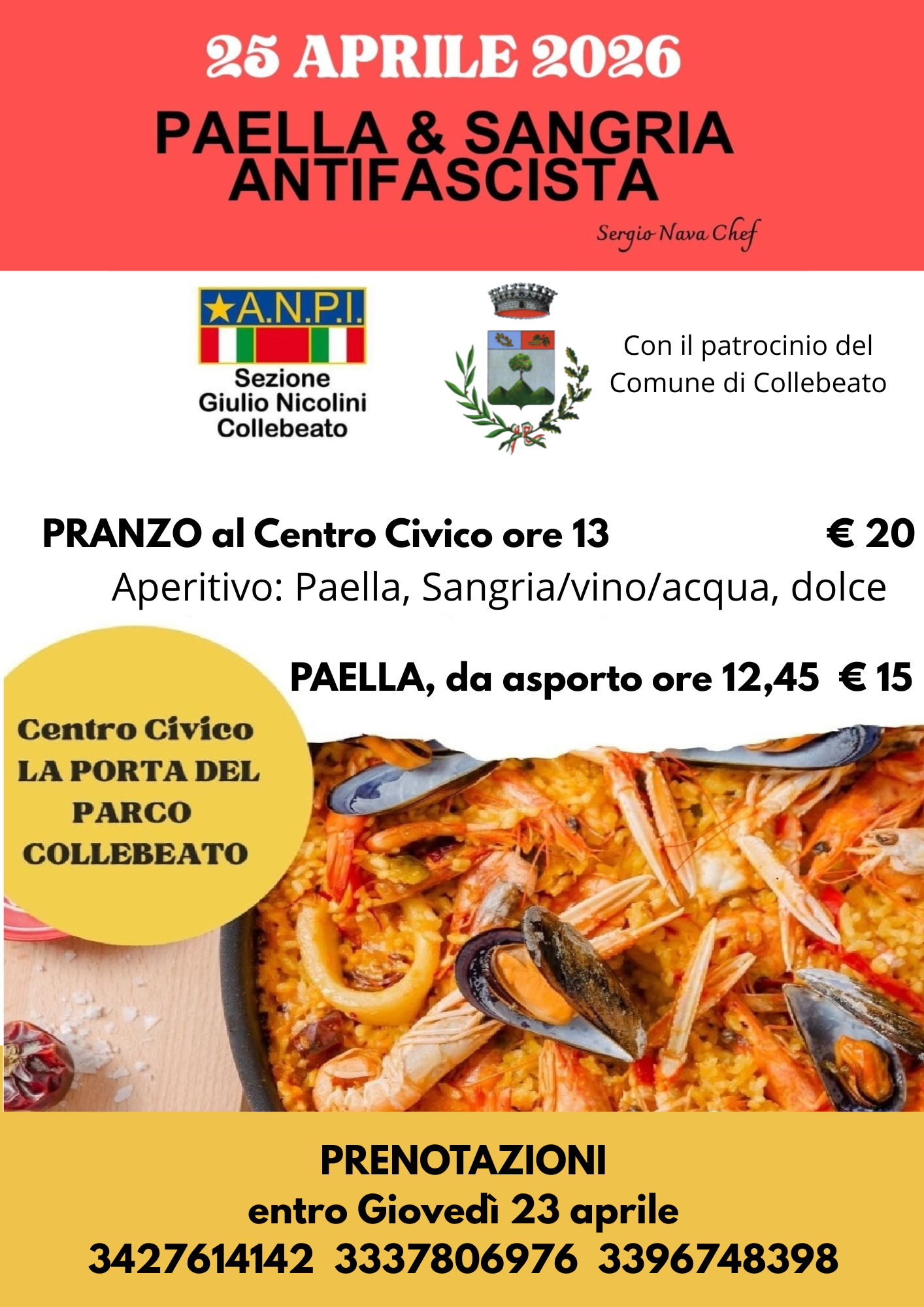 Paella e Sangria antifascista il 25 aprile presso il Centro Civico