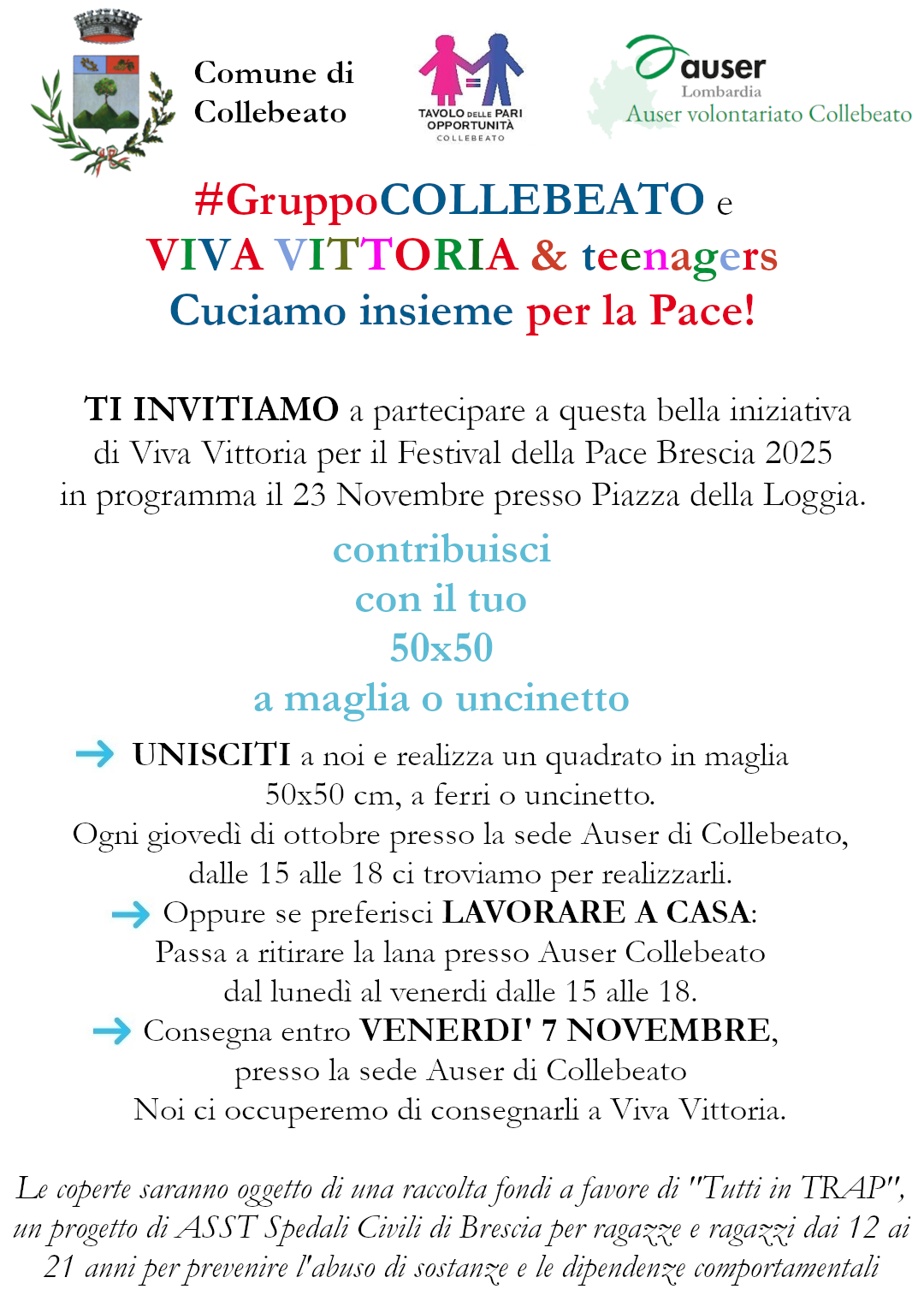 Ti invitiamo a partecipare a questa bella iniziativa di Viva Vittoria per il Festival della Pace Brescia 2025 in programma il 23 Novembre presso Piazza della Loggia