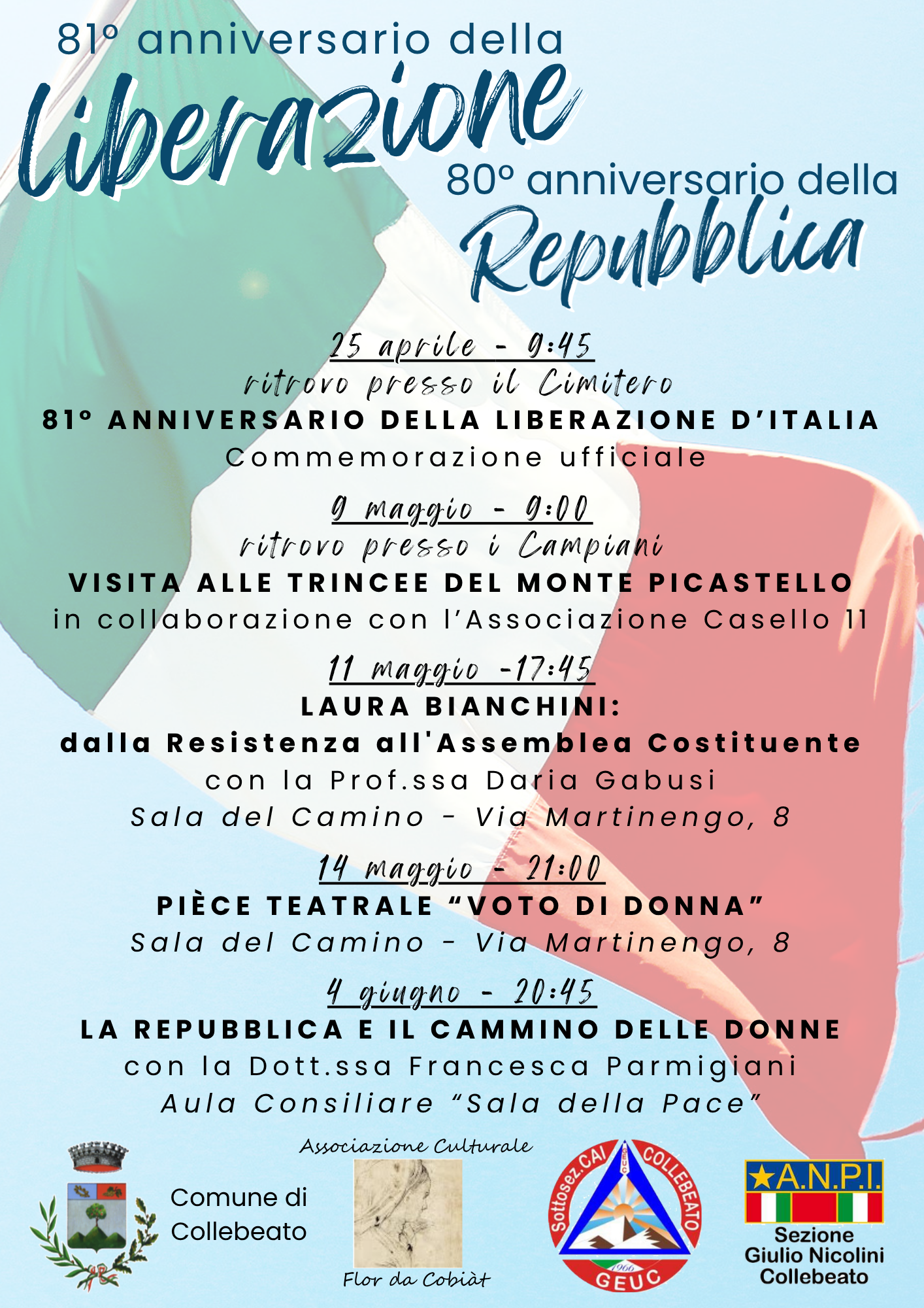 25 aprile ore 9:45 - 81° anniversario della liberazione d'Italia, commemorazione ufficiale presso il cimitero;